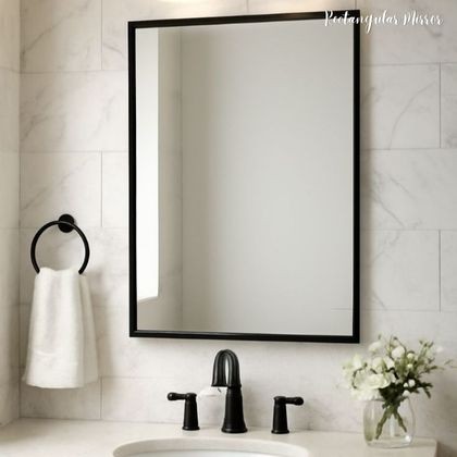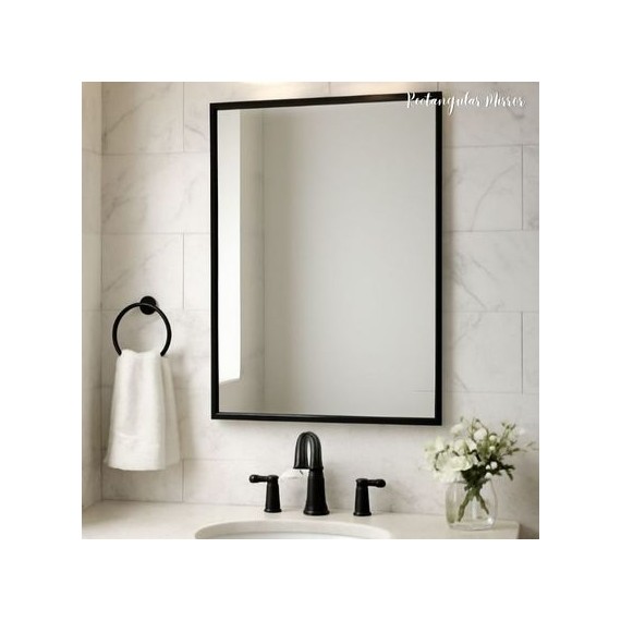 Rectangular Mirror - Black with Aluminum Frame- 70 x 50cm