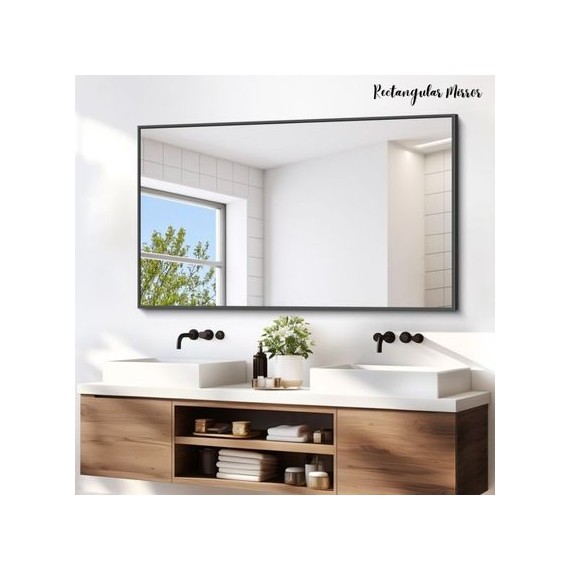 Rectangular Mirror - Black with Aluminum Frame- 60 x 45 cm