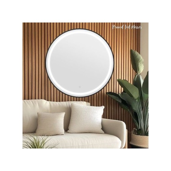 Round Led Mirror - Black with Aluminum Frame - 60 cm