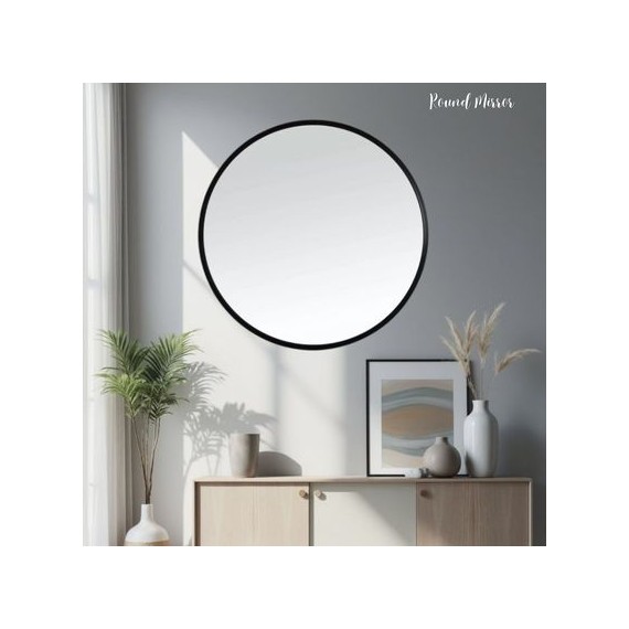 Round Mirror - Black with Aluminum Frame - 70 cm